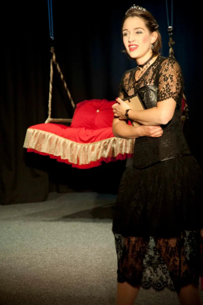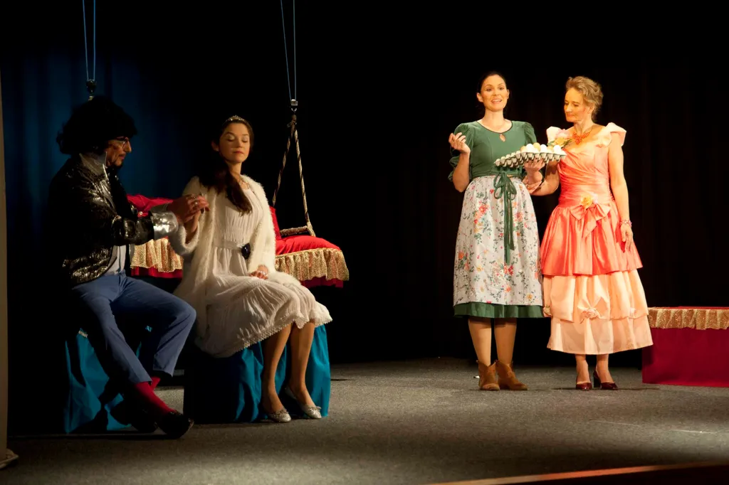 Die extravagante Heldin und schöne Prinzessin gerät nach dem Ableben ihres Vaters in emotionale und finanzielle Turbulenzen. Einerseits hat sie ihr Reich aus wirtschaftlichen Engpässen, stillstehenden Baumaßnahmen gigantischen Ausmaßes und politischen Intrigen zu führen. Andererseits gestaltet sich die Wahl von Freund und Feind aus dem Sammelsurium an Figuren schwierig. Die Stiefschwester schwankt zwischen Aufstand und unverbrüchlicher Treue zum Hofstylisten. Um leibliches Wohl und Klatsch kümmern sich die Stiefmutter und eine Bio- Bäuerin, während Zofe und Mieze für atmosphärische Aufadungen sorgen. Natürlich dürfen auch ein rettender Prinz, ein ökonomisch versierter Zwerg und eine zwielichtige Fee in Schloss und Erzählung nicht fehlen. Thrashig aufbereitete Archetypen, sprachbegabte Tiere, magische Artefakte, aktuelle Anspielungen, überraschende Wendungen, glückliches Ende, …