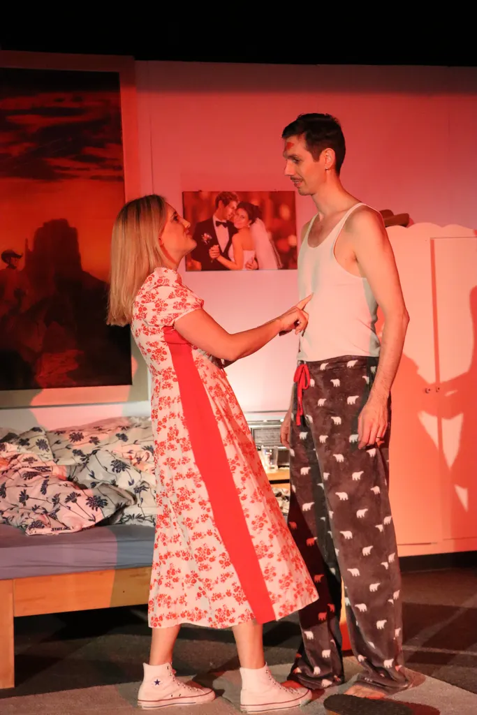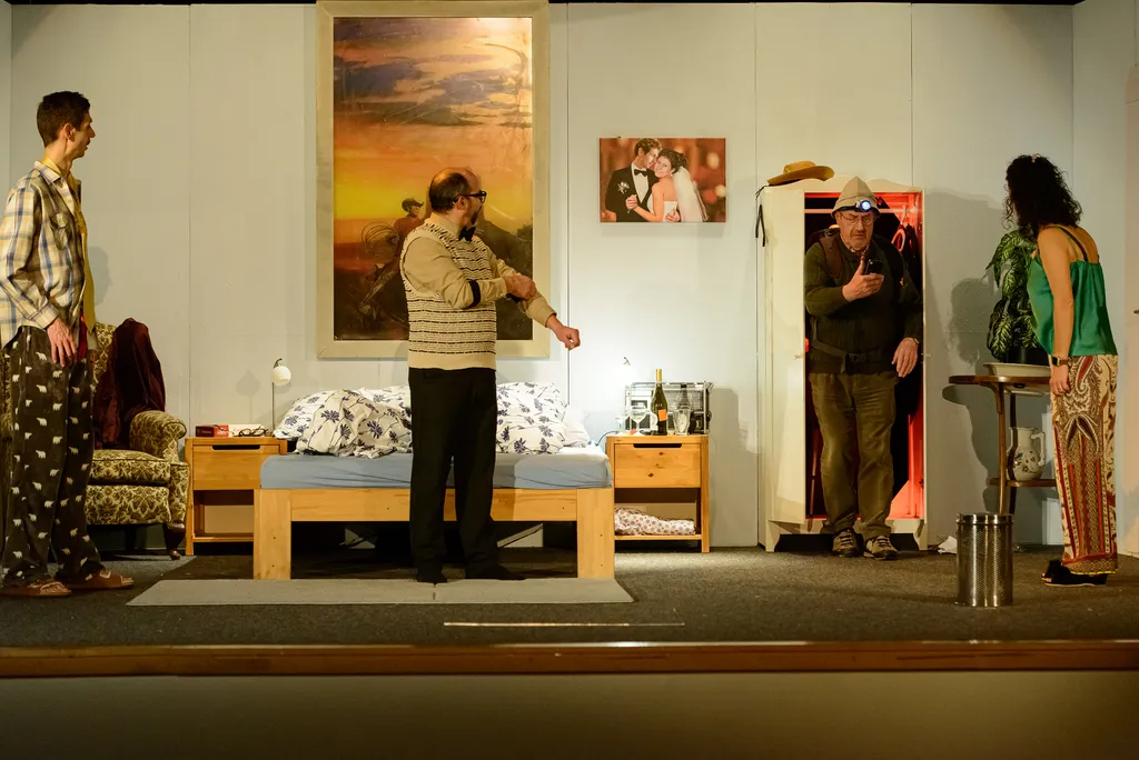 Die Bilanz seines Daseins? Katastrophal. Doch wer glaubt, Jürgen und seine Frau Sabine (Monika Schwienbacher) würden sich widerstandslos ergeben, hat die Rechnung ohne diesen charmanten, sich hartnäckig widersetzenden Mikrokosmos gemacht. So wird im Schlafzimmer nicht aufgegeben, sondern gestritten, verhandelt, geflirtet und gekämpft, bis selbst der Teufel ins Schwitzen kommt.