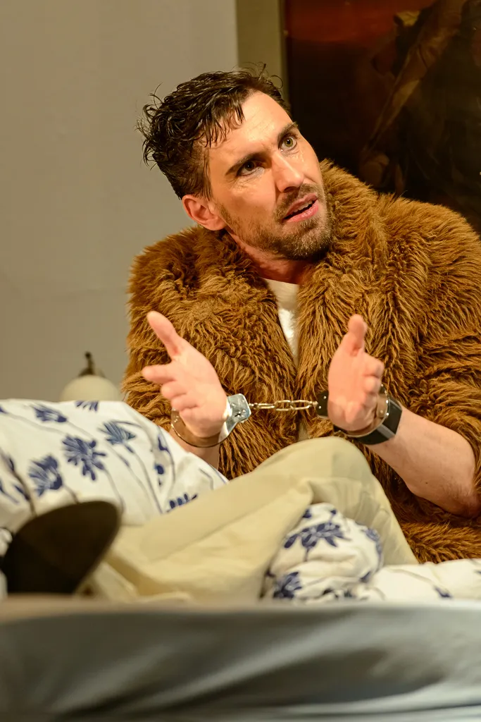 Der Luzifer des Abends agiert nicht als bloßer Antagonist, sondern als fein dosierter Motor der Handlung. Mit einer Mischung aus ironischer Grandezza und trockener Boshaftigkeit leitet er seinen Auftritt, ohne sie zu dominieren. Jürgen, herrlich normal und zugleich liebenswert überfordert, verkörpert den archetypischen Antihelden, der durch seine Schwächen gewinnt. Seine Frau sorgt mit ihrem warmherzigen Pragmatismus den emotionalen Fixpunkt des Abends. Sie setzt Luzifer immer dann unter Druck, wenn der Moment es verlangt und scheut dabei nicht einmal davor zurück, ihn mit charmant resoluter Konsequenz per Handschelle ins Ehebett zu manövrieren.