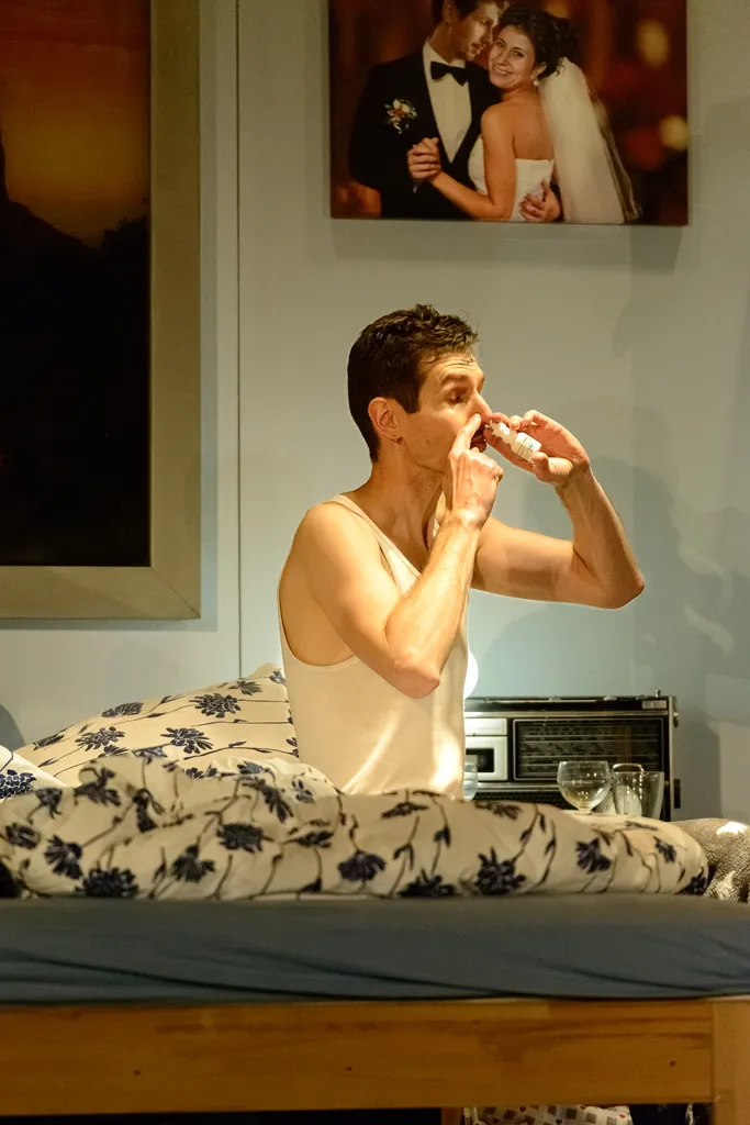 Im Schlafzimmer tut sich die Hölle auf. Und heraus steigt ein emotionsloser Buchhalter, der trocken über Jürgens Leben Bilanz zieht. Humorlos? Mitnichten!